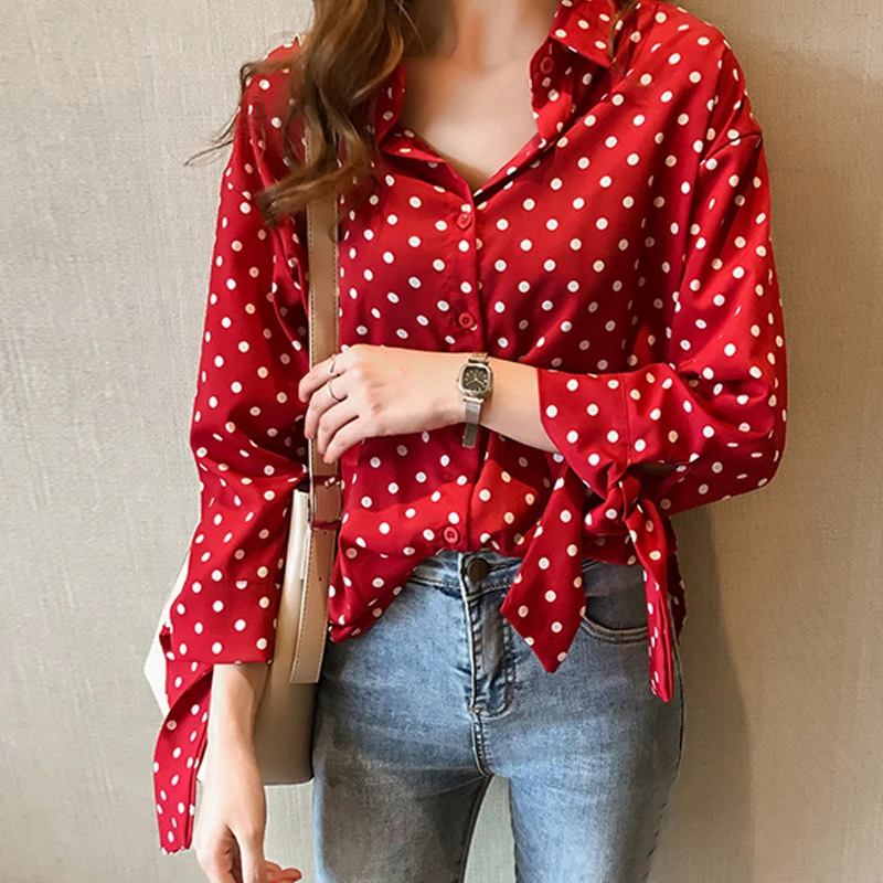 Very best 2018 Autumn Chiffon Plus Size Tops Women Blouses Loose Polka Dot Shirts Female Bow Long Sleeve Blou
