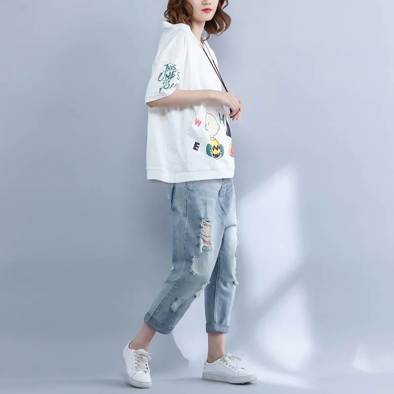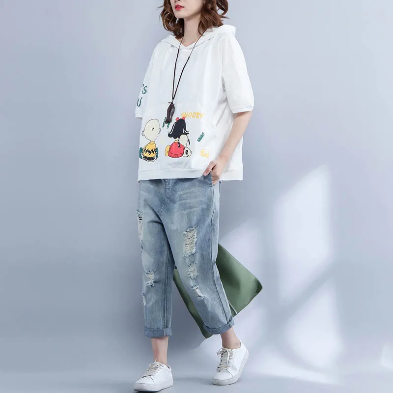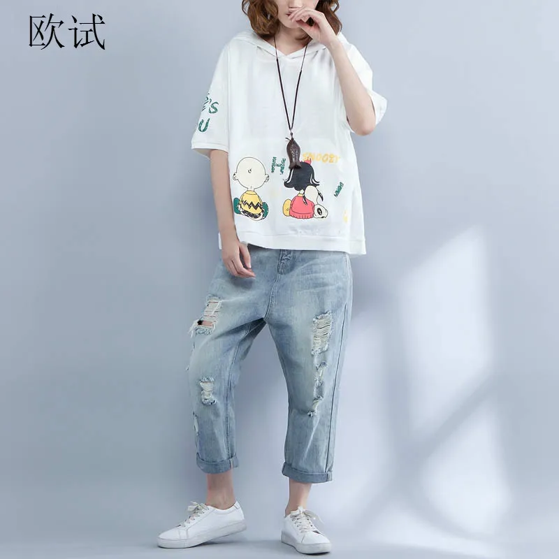 Very best Women Hooded Cartoon T-Shirt Summer Short Sleeve Hoodie T Shirt Kawaii Cotton Tshirts Casual Loose