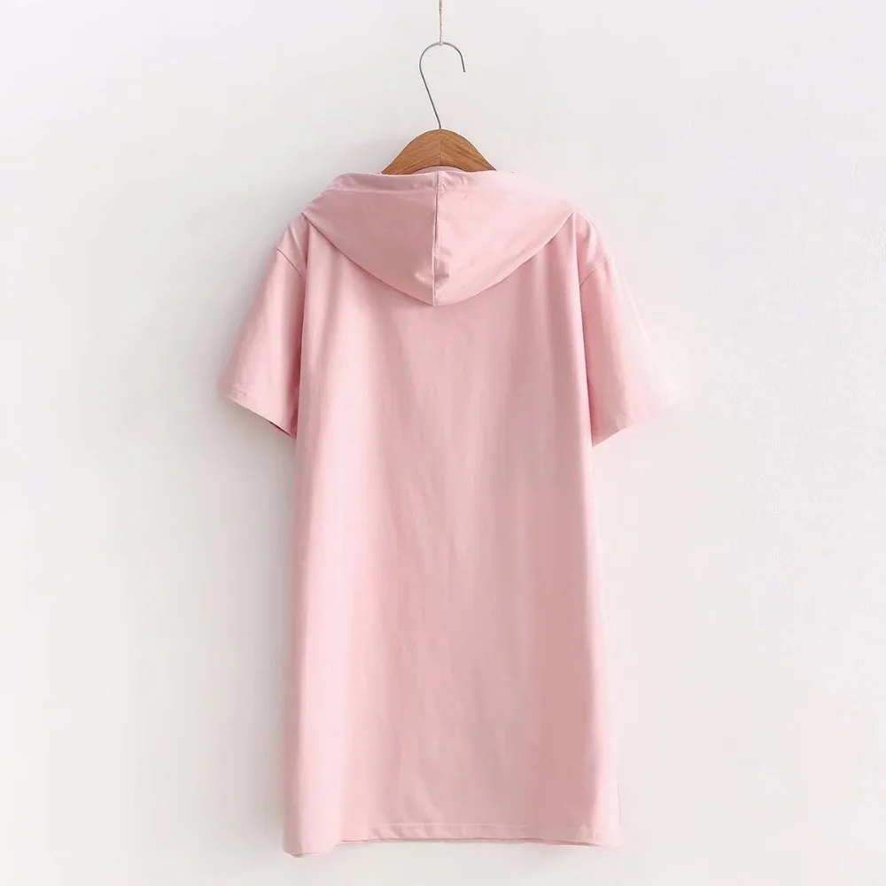 Promo Plus size cotton hooded collar letter print t shirt women short sleeve tshirt 2018 white & black &