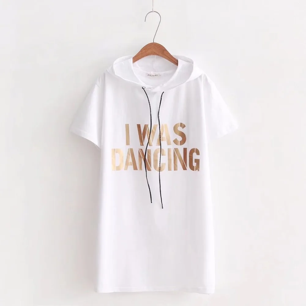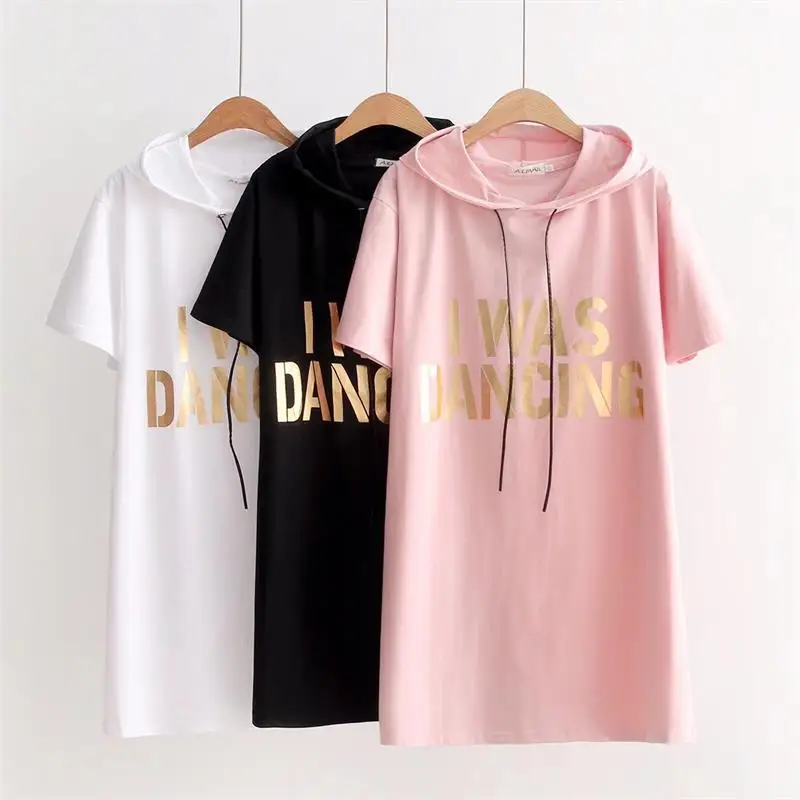 price reduction Plus size cotton hooded collar letter print t shirt women short sleeve tshirt 2018 white & black &